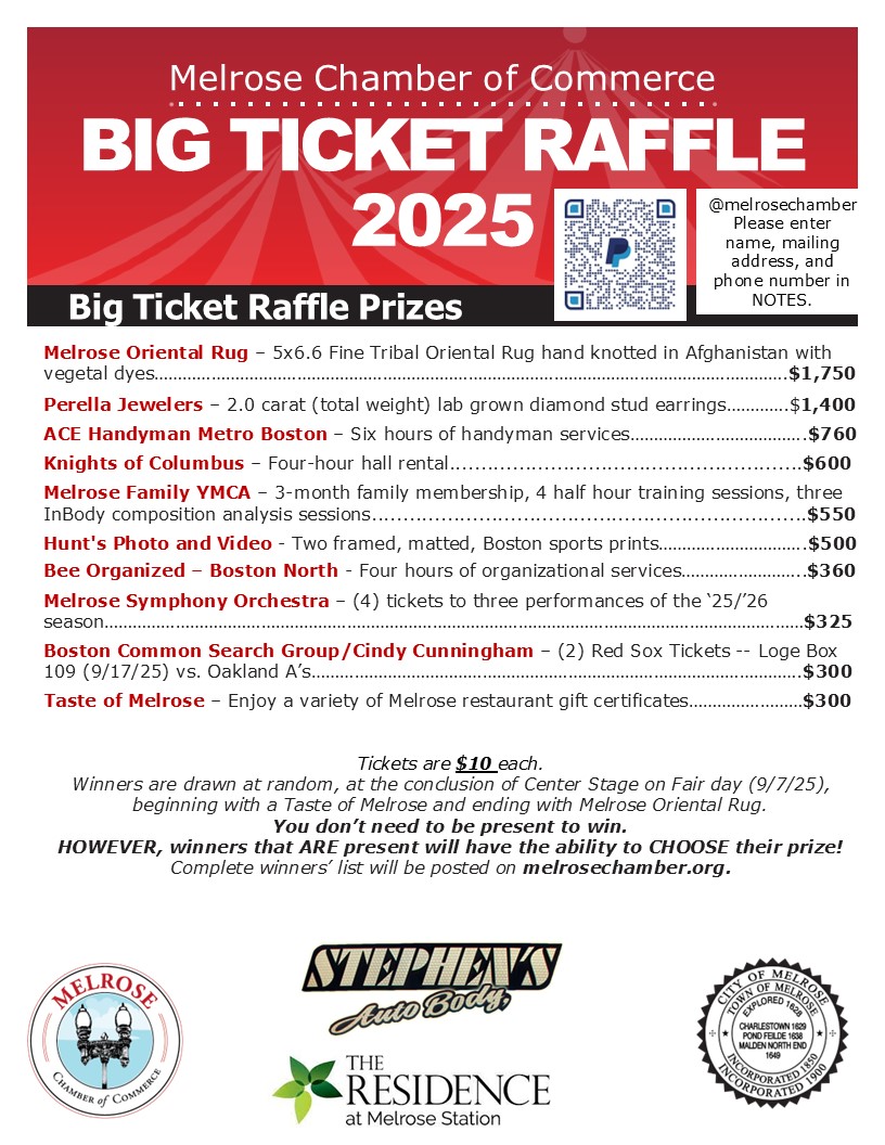 Tickets are $10 each and can be purchased via PayPal (@MelroseChamber).